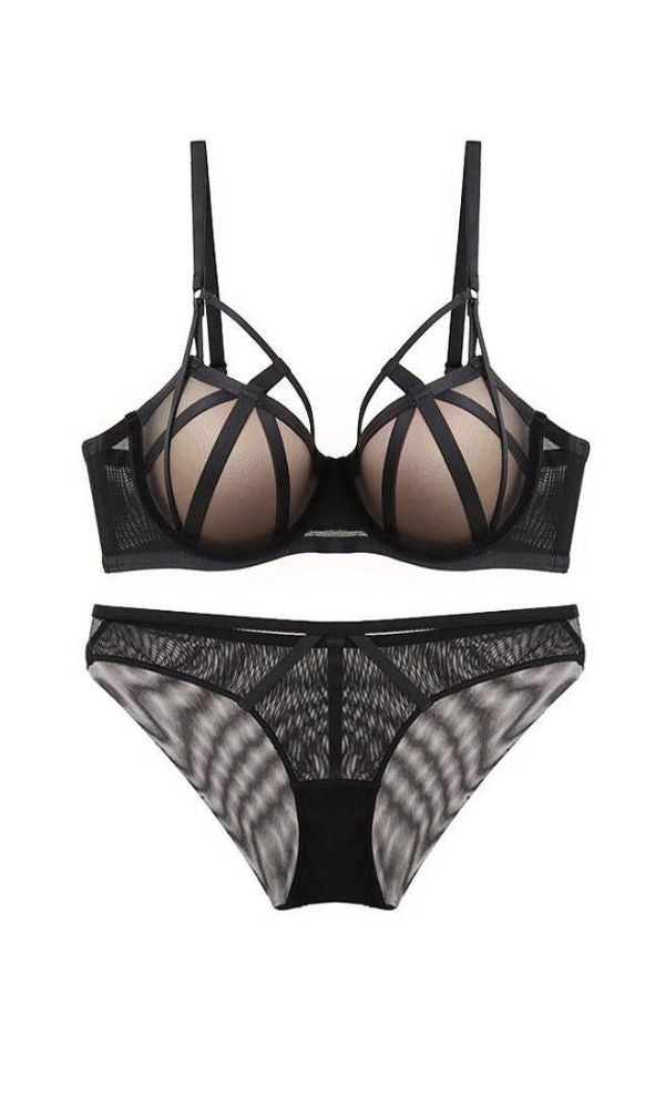 Everyday Glamour!  Black ultra lift contour bra with black strap detail and contrast nude lining.